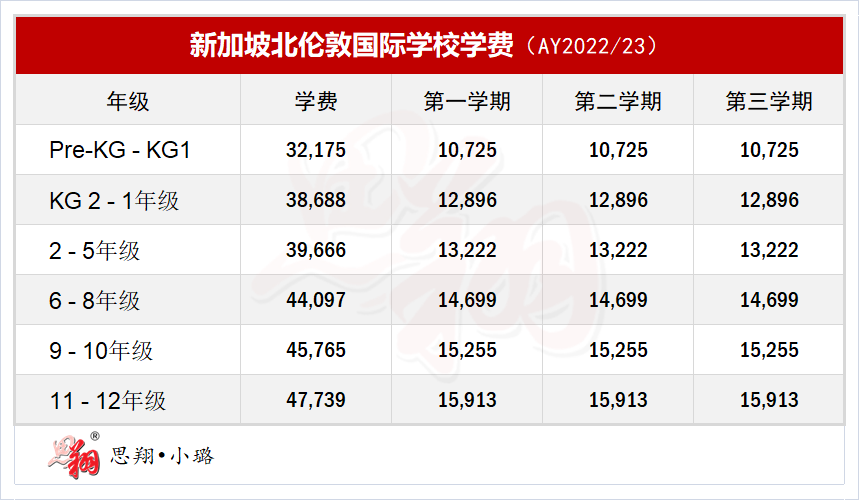 NLCS学费分为三个学期,每年的学费根据所读年级不同,学费不包括考试注册,校服,以及学校组织的旅游活动费用。